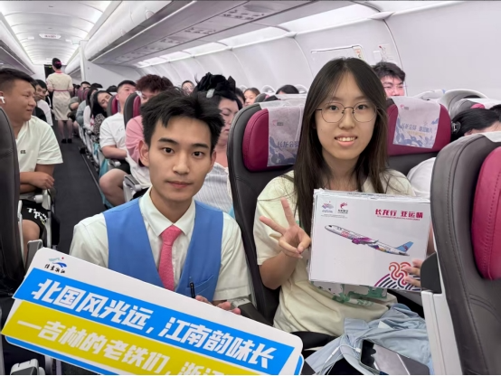 此外,8月7日晚,浙江省文化广电和旅游厅联合长龙航空推出“嗨游浙江·吉刻出发”主题航班,通过机上文旅推广、有奖问答等形式,向前往浙江的吉林游客发出“嗨游浙江”的盛情邀约。